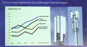 Ab min 1:15:15 noch die nebenstehende Grafik zu den Auffälligkeiten von Krankheiten und Beschwerden in Bezug auf die Entfernung zu Sendemasten.