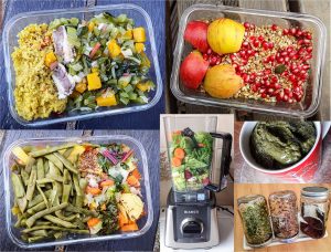 Verschiedene Sachen die ich esse: z.B. Müsli, zwei verschiedene Abendessen, einen grünen Smoothie und Brokkolisprossen. Fotos: H.C.