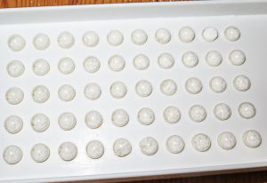 Der letzte Schritt ist die Ernte. Dazu werden die Kapseln aus dem Träger in eine Schale gedrückt und dann in eine (alte) Supplemente-Dose gegeben. Fertig.