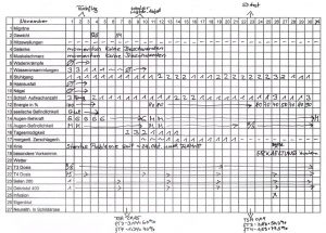 Immer wieder gibt es Fragen nach Möglichkeiten, den Befindlichkeitsverlauf zu dokumentieren – hier nun ein Vorschlag, wie man es per Tabelle machen könnte. Dieses Vorgehen hilft einem, ziemlich genau „Problemfelder“ zu orten und auch Dinge mit einzubeziehen, die man nicht so ohne Weiteres auf dem Schirm hat – auch kann man gut erkennen, wie der eigene Körper auf diverse Einflüsse reagiert und sie verarbeitet.