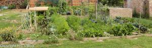 Das gemauerte Hochbeet in Schlüsselloch-Form im Hintergrund ist neu und wird erst in der nächsten Saison benutzt werden. Im Herbst wird es mit Baumschnitt, Mulch und Erde gefüllt.