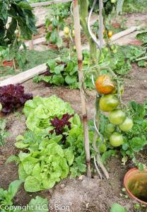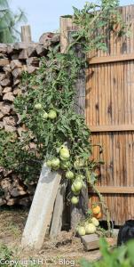 Für einen Teil der Tomaten hatte ich eine Überdachung gebaut, die anderen stehen frei. Normal ist das mit dem Freistehen in Südungarn kein Problem, weil es im Sommer wenig Regen gibt. Zwischen den Tomaten gedeiht der Basilikum prächtig.