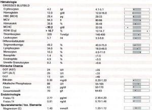 Damit alles nachvollzogen werden kann, präsentiere ich in diesem Abschnitt auch die Scans der wichtigsten eisenrelevanten Ausschnitte aus den Blutwerten, welche ich freundlicher Weise hier verwenden darf.