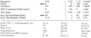 Dann wurde zwei mal in Bezug auf den Eisen-Status und die Schilddrüse nachgeliefert. Folgendes ist zu sehen: