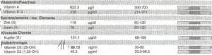 • Anm: Das Labor gibt zwar 50 µg/dl als Grenzwert an, dieser Wert ist jedoch „irre“ niedrig. Die Studienlage und auch GanzImmun geben 65 µg/dl als unteren Grenzwert an.