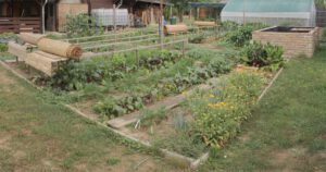 Beete legen wir selber klassisch an. 3-5 Reihen und dann immer ein Weg, oft mit einem Brett, dazwischen.