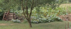 Chaos-Kompost mit 5 Kürbis-Pflanzen. Foto: Mitte Juli.