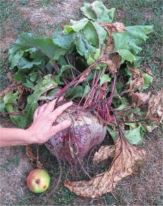 Unsere roten Rüben, speziell die Sorte Robuschka, gedeihen prächtig. Ein aktuelles Exemplar hat 4,1 Kg gewogen und viele andere sind nicht viel kleiner. 2 Kg ist hier sicher die Durchschnittsgröße, wobei die roten Rüben noch wachsen. Die 4,1 Kg Rübe ist zudem innen schön marmoriert gewachsen und wirklich zart & delikat!