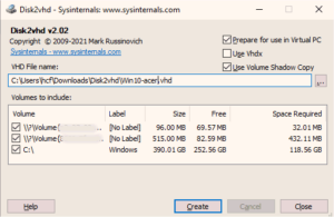 Den alten Win10 PC in ein VM-Image sichern (mit Disk2VHD)