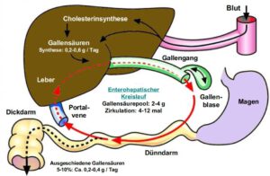 95% der Gallensäuren (und Salze) werden „recycelt“. 500 mg TUDCA / Tag können Defizite ausgleichen.