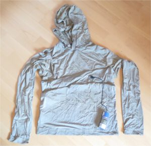 Ein Hoodie aus Silbergewebe. Brachte mir nichts, außer hohe Silberwerte im Haar.