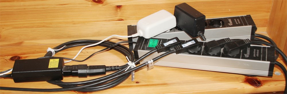 Elektrogeräte die den ganzen Tag mit dem Stromnetz verbunden sind haben abgeschirmte Anschlusskabel bekommen, einige „Standbygeräte“ auch Steckdosenadapter mit Schalter. Da sollte man dann jedoch nachmessen, daß auch die Phase geschaltet wird, also die Leitung bzw. „das Loch der Steckdose“, wo die 230V anliegen. Die (üblichen) „billigen Adapter“ schalten leider nur eine Leitung an und aus und nicht beide 🙁
