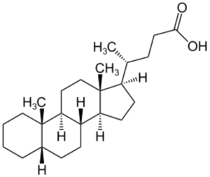 - u.a. Cholsäure (CA), Chenodeoxycholsäure (CDCA), Lithocholsäure (LCA) und Deoxycholsäure (DCA),