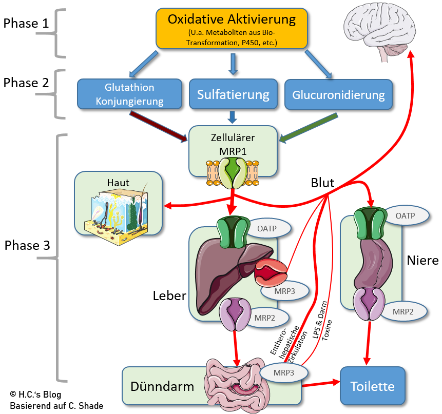 Was nun noch weniger Menschen klar ist, dass die Leber bei Störungen bzw. Überlastung, Gifte, Bilirubin, Gallensäuren & Co. wieder zurück ins Blut befördert (-> über MRP3/4, weiter unten erklärt), so dass die Niere in Folge eine höhere Last bei der Entsorgung wasserlöslicher Toxine und Stoffwechselprodukte über den Urin trifft. Das macht auch die beste Niere nicht ewig mit. Allerdings wirkt sich deswegen eine Unterstützung der Leber oft auch auf die Nieren positiv aus. Alles hängt im Körper eben mit allem zusammen.