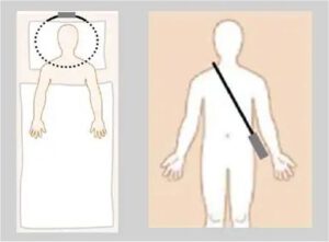 Alternative Anwendungen für das 4 Kanal SHLS sind z.B. als Schutz für den Kopf im Bett wie in der nebenstehenden Grafik angegeben. Allerdings hat das 4-Kanal SHLS eine Polarität! In der Regel trägt man die Leiterschleife links neben dem Hals und hat das Gerät rechts in Höhe der Hüfte hängen – aber so, das man von der Seite die Beschriftung lesen kann und diese nicht auf dem Kopf steht. Trägt man das SHSL spiegelverkehrt, dann muss die Beschriftung auf dem Kopf stehen. Dies gilt, soweit die Körperpolaritäten wie üblich verteilt sind. Die Tragerichtung ist bei diesem Gerät fundamental wichtig bzw. individuell, z.B. per Neutralpendel und persönlicher Wellenlänge, zu prüfen!