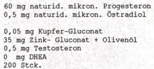 Hormone als Creme (Apotheker-Herstellung) und Tablette
