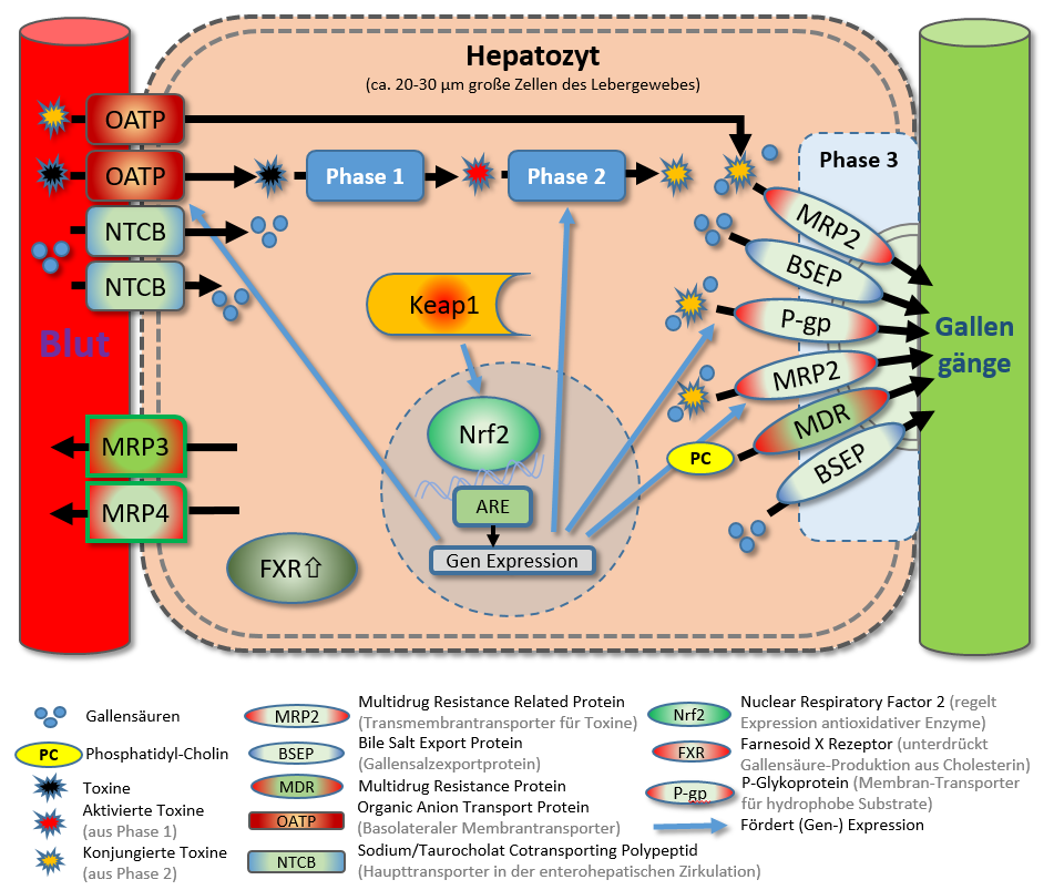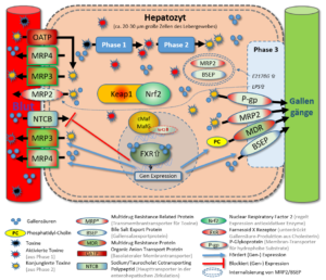 Leber-Galle Teil 2: Gallen-Transport (BSEP, MRP2), Regulation (FXR & Co.) und Gallenstau-Kaskade (MAPK, Maf, Nrf2, Entzündungen & LPS/Endotoxine)