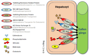 Ist ein Transporter, z.B. aus genetischen Gründen, oder dessen Regulation gestört, oder fehlen die „Rohstoffe“, dann kann es zu Problemen mit der Zusammensetzung der Galle und dem Gallenfluss kommen. Probleme