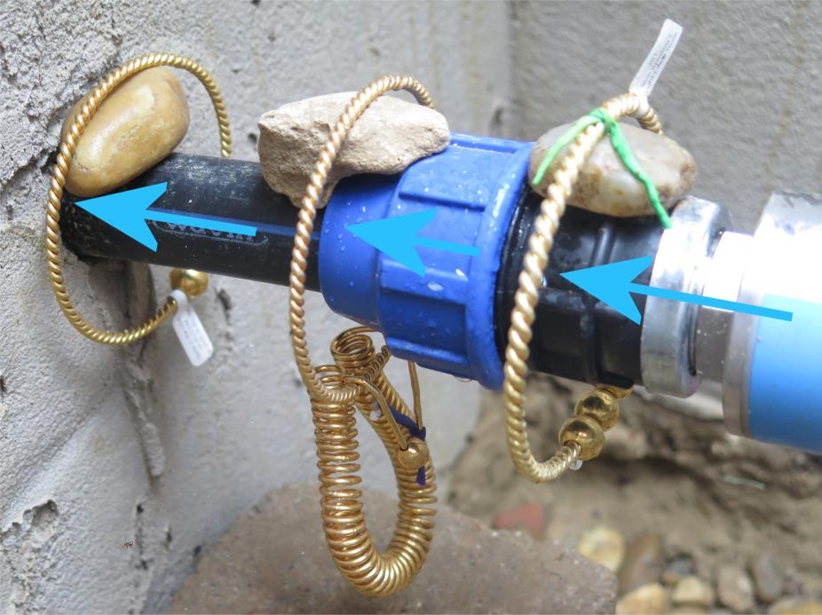 Vereinfachte Tensor-Toolkette für gutes Wasser. Hier nur temporär mit Steinen für Messversuche ausgerichtet.