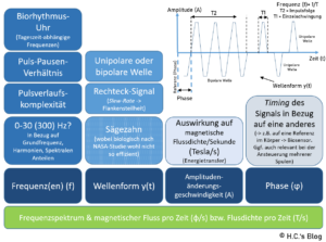 Dabei scheint es keine „genauen“ Frequenzen, sondern eher Frequenzbereiche zu geben., die physiologisch wirksam sind. Wichtige jedoch erscheinen mit eine hohe Flussdichtenänderungsrate in T/s bzw. dB/dt sowie die zeitliche Länge der Impulsdauer zu sein. Eine Angabe der Magnetfeldstärke nur in „Tesla“ oder „Gauss“ sagt deswegen nichts aus. Aber auch mit konkreten Daten kann selbst ein Experte nur tendenziell erahnen ob etwas wirken könnte oder nicht. Wichtig sind deswegen u.a reproduzierbare Erfolge in der praktischen Anwendung bevor der Kauf eines Gerätes erwogen wird.